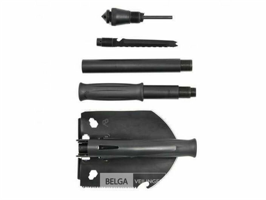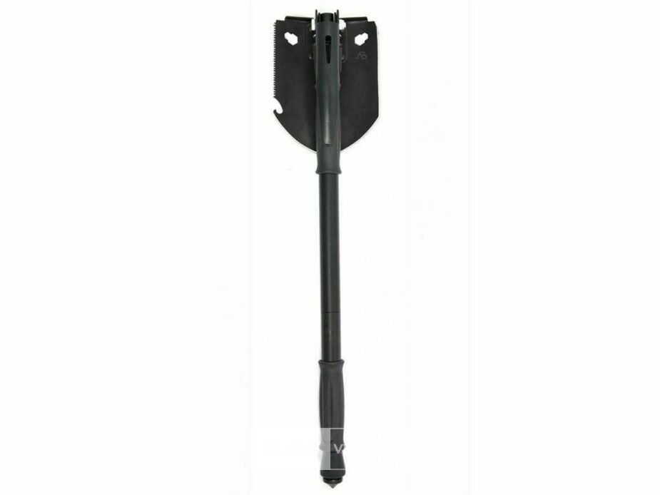 AB Bushcraft shovel zwart met magnusium firesteel en draagtas