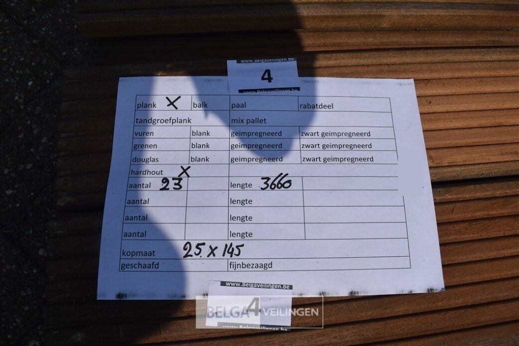 Hardhout planken - lengte 3,66m - kopmaat 25x145mm (23 stuks)