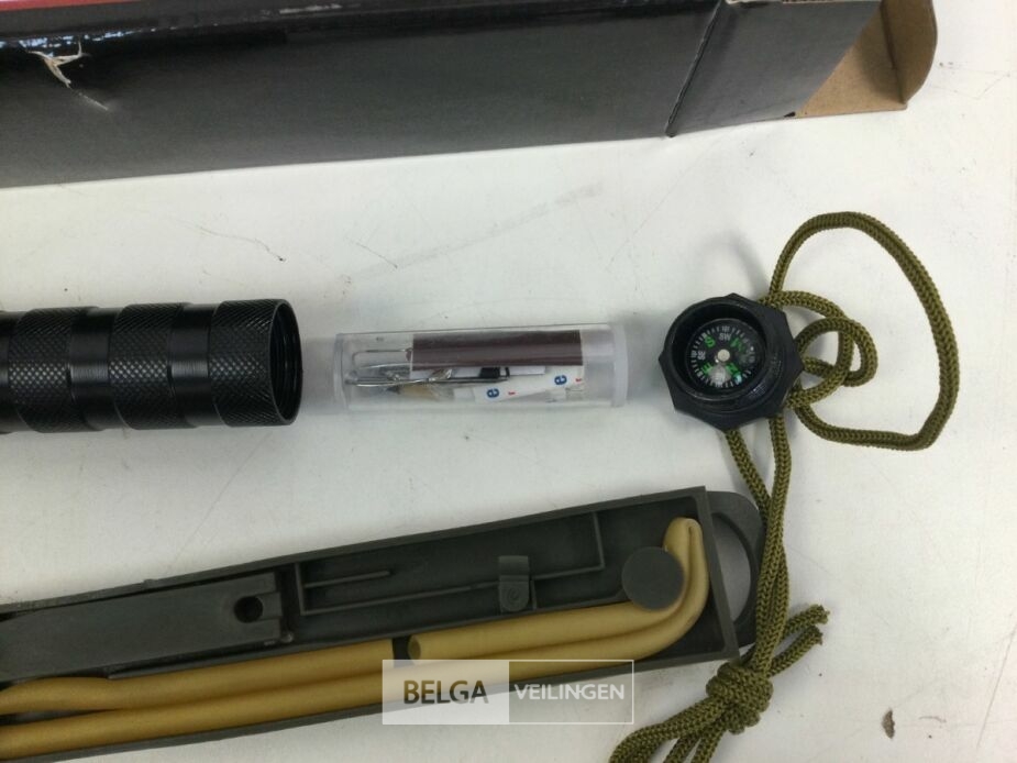 MFH USMC Survival mes met vismes, catapult, survival accessoires en abs schede