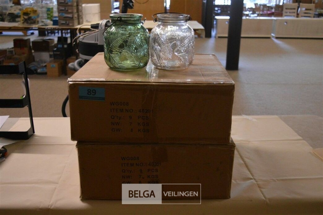 ± 18 glazen potjes met relief diverse kleuren ± H=17 cm Ø10 cm