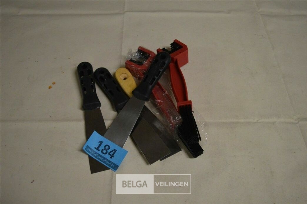 partij werkmaterialen plamuurmessen, borstels voor kettingen